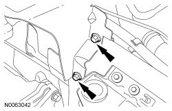 13. Remove the selector lever cable bracket bolts and position aside the selector lever cable and bracket.
