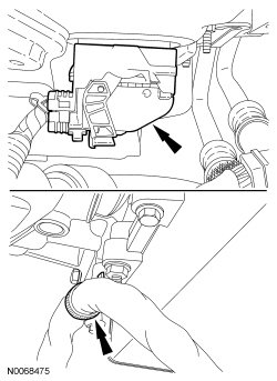 2. Disconnect the Mass Air Flow (MAF) sensor electrical connector and electrical harness fastener.