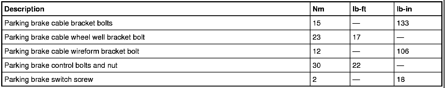Parking Brake System: Specifications
