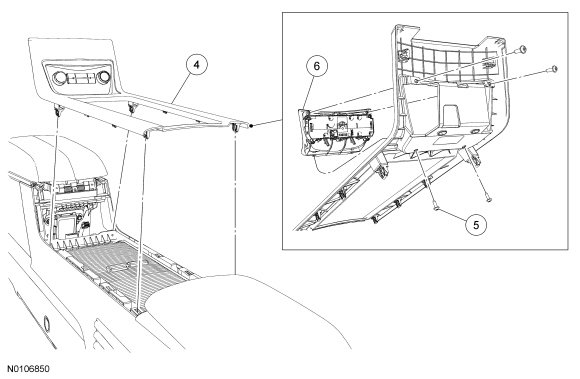 4. Remove the rear floor console upper trim panel.