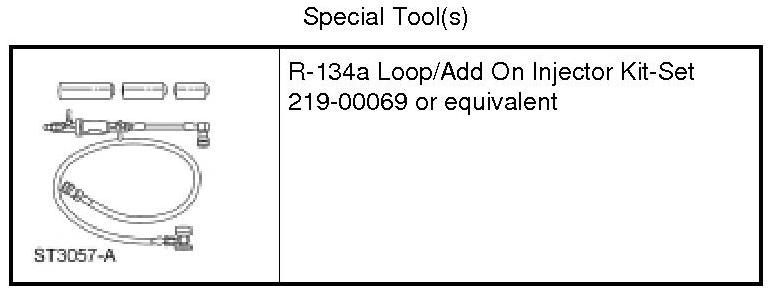 NOTE: If fluorescent leak detection dye is also to be added during A/C charging, the dye may be added to the dye/lubricant injector, from the R-134a Loop/Add On Injector Kit-Set, along with the PAG oil.