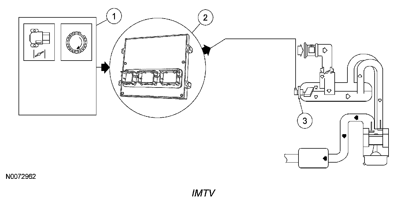 The IMTV is a motorized actuated unit mounted directly to the intake manifold. For additional information on IMTV components, refer to Engine Control Components.