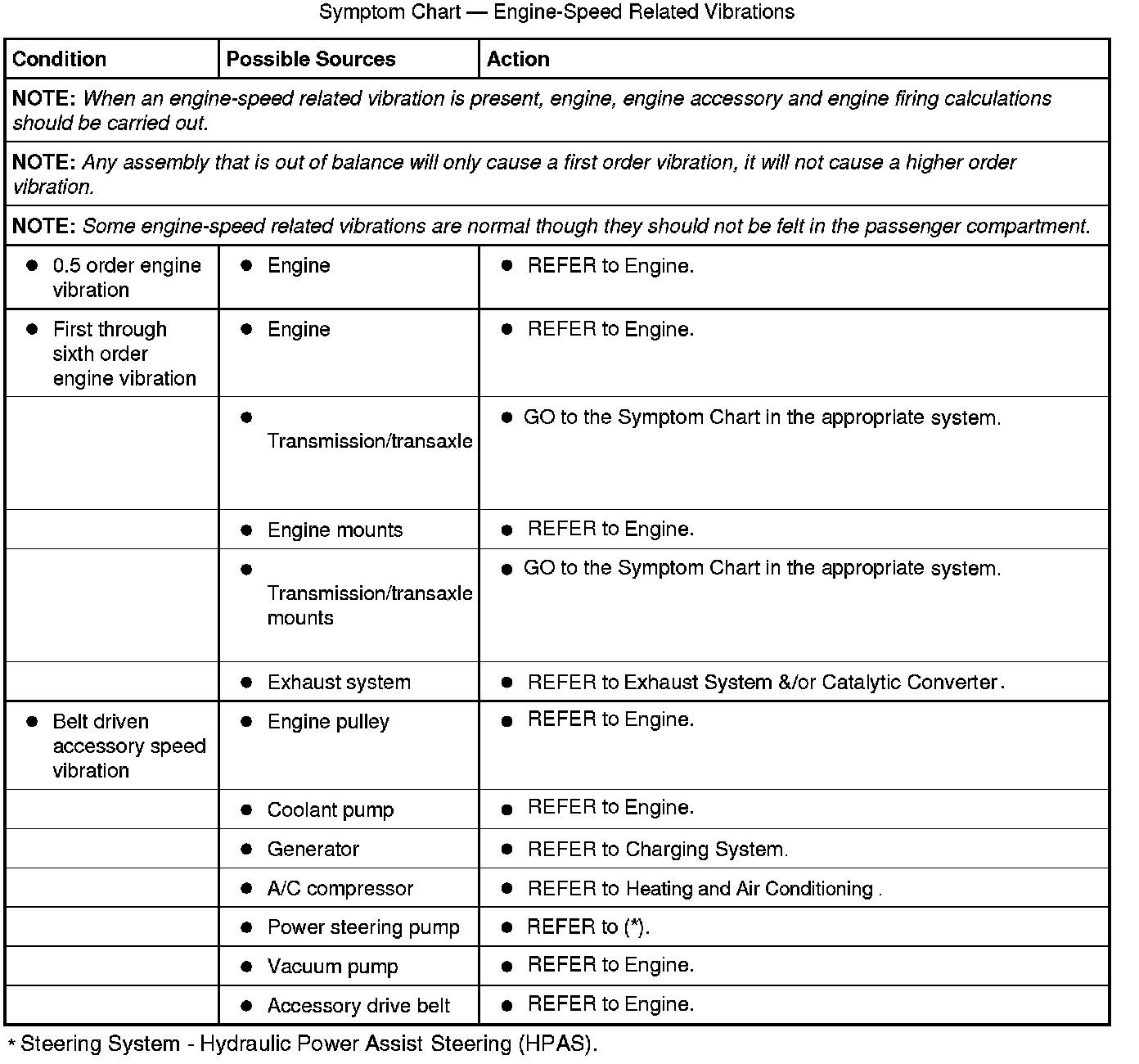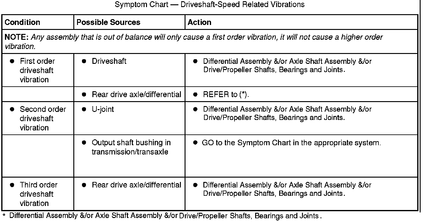 Symptom Chart - Driveshaft-Speed Related Vibrations