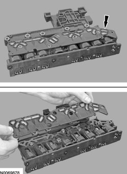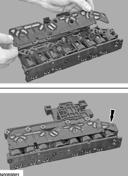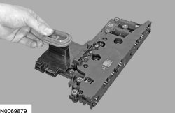 189. If replacing the solenoid body, install the replacement service tag on the transaxle case over the current solenoid body strategy tag.