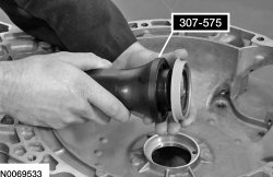 174. Install the Support Solid Seal Installer 307-579/2 on the Support Solid Seal Installer 307-579/3 and slide the seal in to the groove on the stator support assembly.