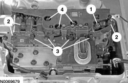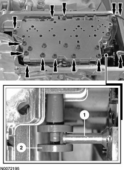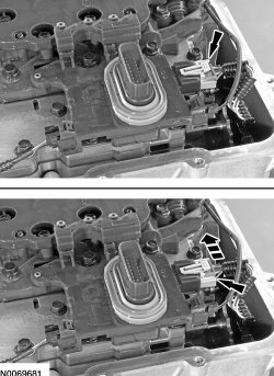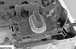 275. NOTICE: Be careful not to pinch the TSS (Turbine Shaft Speed), OSS (Output Shaft Speed) or TR (Transmission Range) sensor wiring harnesses under the valve body, or damage to the wiring harness or connectors may occur.