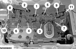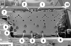 276. Install the main control valve body bolts. Tighten the bolts in the sequence shown.