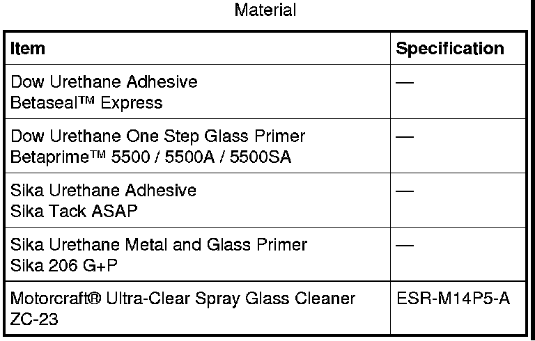 8. NOTE: Be sure to use the same brand and cure-rate products for the urethane adhesive and glass primer. Do not mix different brands of urethane adhesive and glass primer. For additional information, refer to the Material chart.