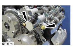 14. NOTE: Removal of the VCT (Variable Camshaft Timing) oil control solenoid will aid in the removal of the primary timing chain.
