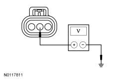 - Measure the voltage between ground and battery current sensor C1646-2, circuit RDC59 (GY/BN), harness side.