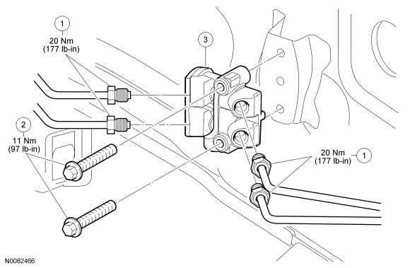 4. Disconnect the brake pressure control valve brake tube fittings, plug the tubes and the ports on the brake pressure control valve.