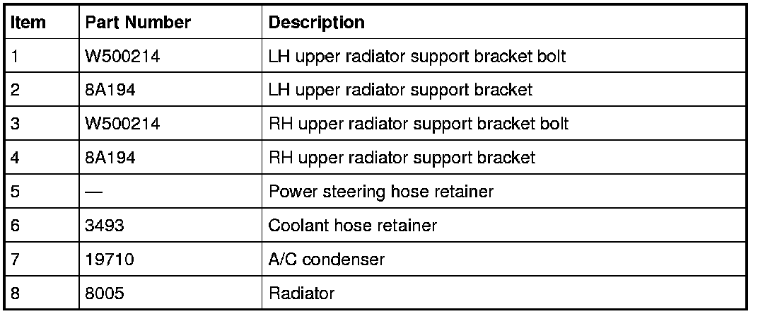 8. Remove the 2 bolts from the upper radiator support brackets and position the radiator towards the engine and remove the 2 upper radiator support brackets from the radiator.