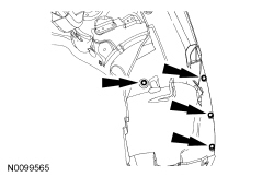 2. Remove the 4 pin-type retainers and position the fender splash shield aside.