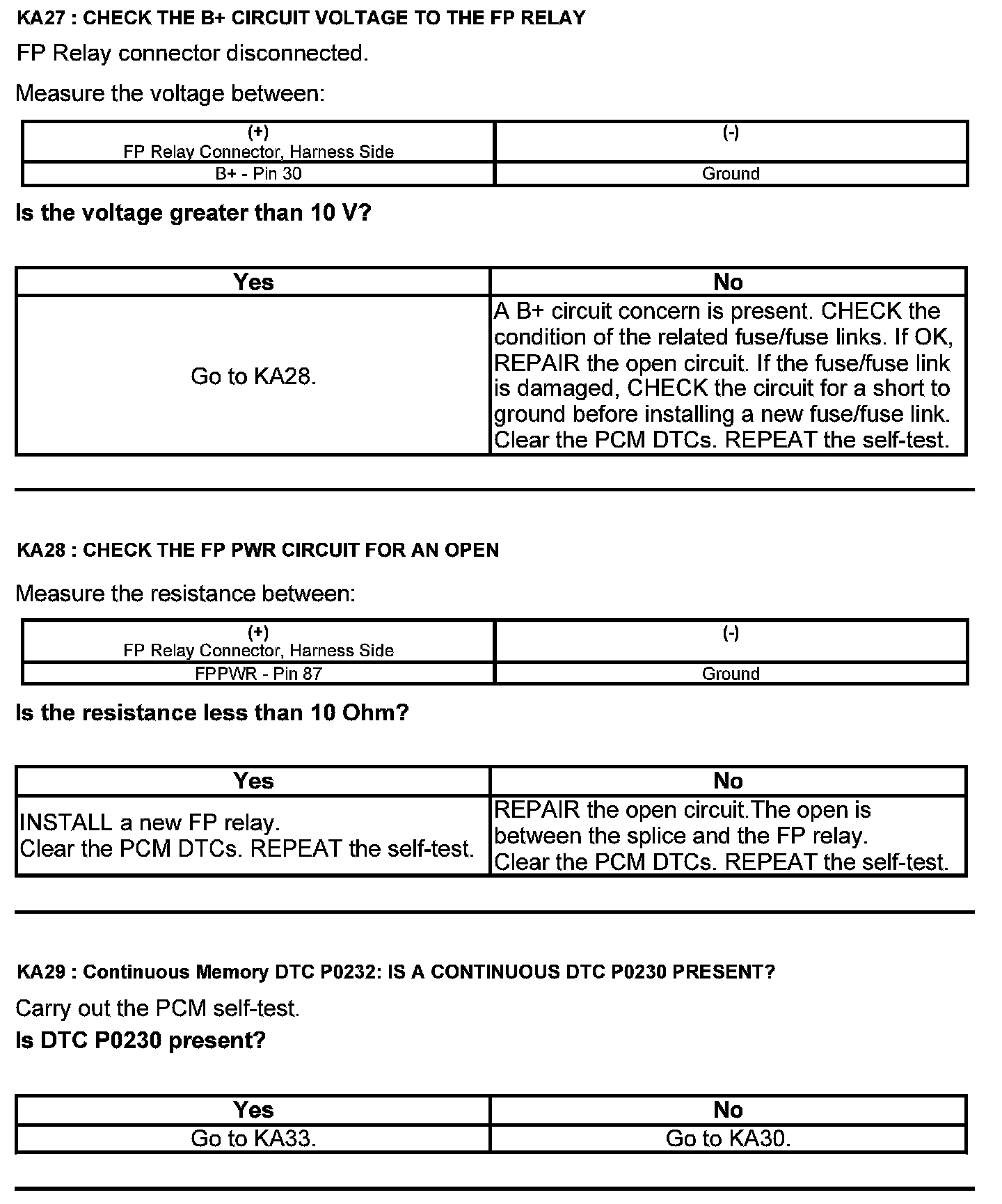 Fuel Pump (FP) Relay Connector - The VPWR and FP circuits may be reversed in the harness connector. Refer to the Wiring Diagrams for schematic and connector information.