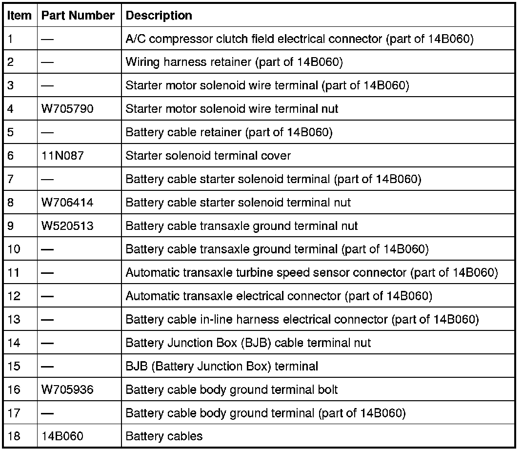 5. Disconnect the battery cable in-line harness connector from the engine compartment wiring harness and position aside.