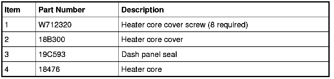 NOTE: If a heater core leak is suspected, the heater core must be pressure leak tested before it is removed from the vehicle.