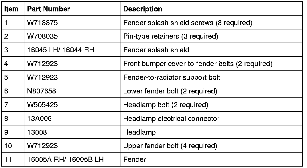 Front End Body Panels - Exploded View