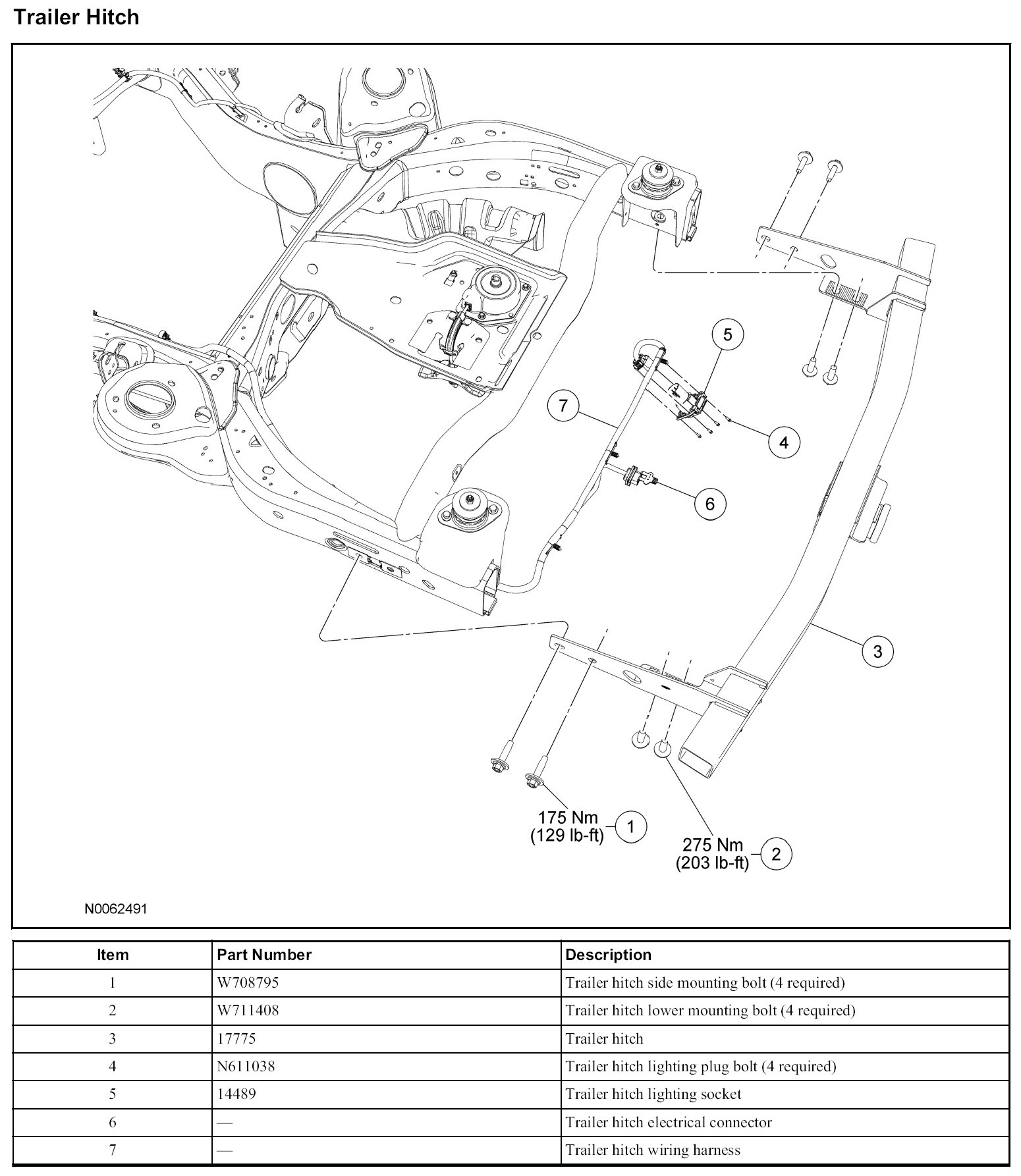 WARNING: Do not permanently remove the trailer hitch. The trailer hitch is an integral part of the vehicle frame. Always reinstall the hitch before delivery of the vehicle to the customer. Failure to follow this instruction may compromise vehicle crash integrity and increase the risk of personal injury in a rear end collision.