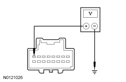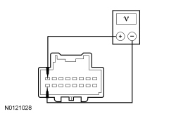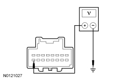 - Measure the voltage between LH exterior mirror C516-1, circuit LRD12 (BU/GY), harness side and ground.
