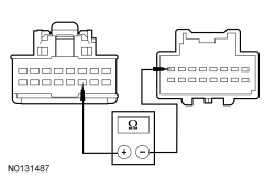 - With video display: Measure the resistance between interior auto-dimming mirror C9039-11, circuit LRD12 (BU/GY), harness side and LH exterior mirror C516-1, circuit LRD12 (BU/GY), harness side.
