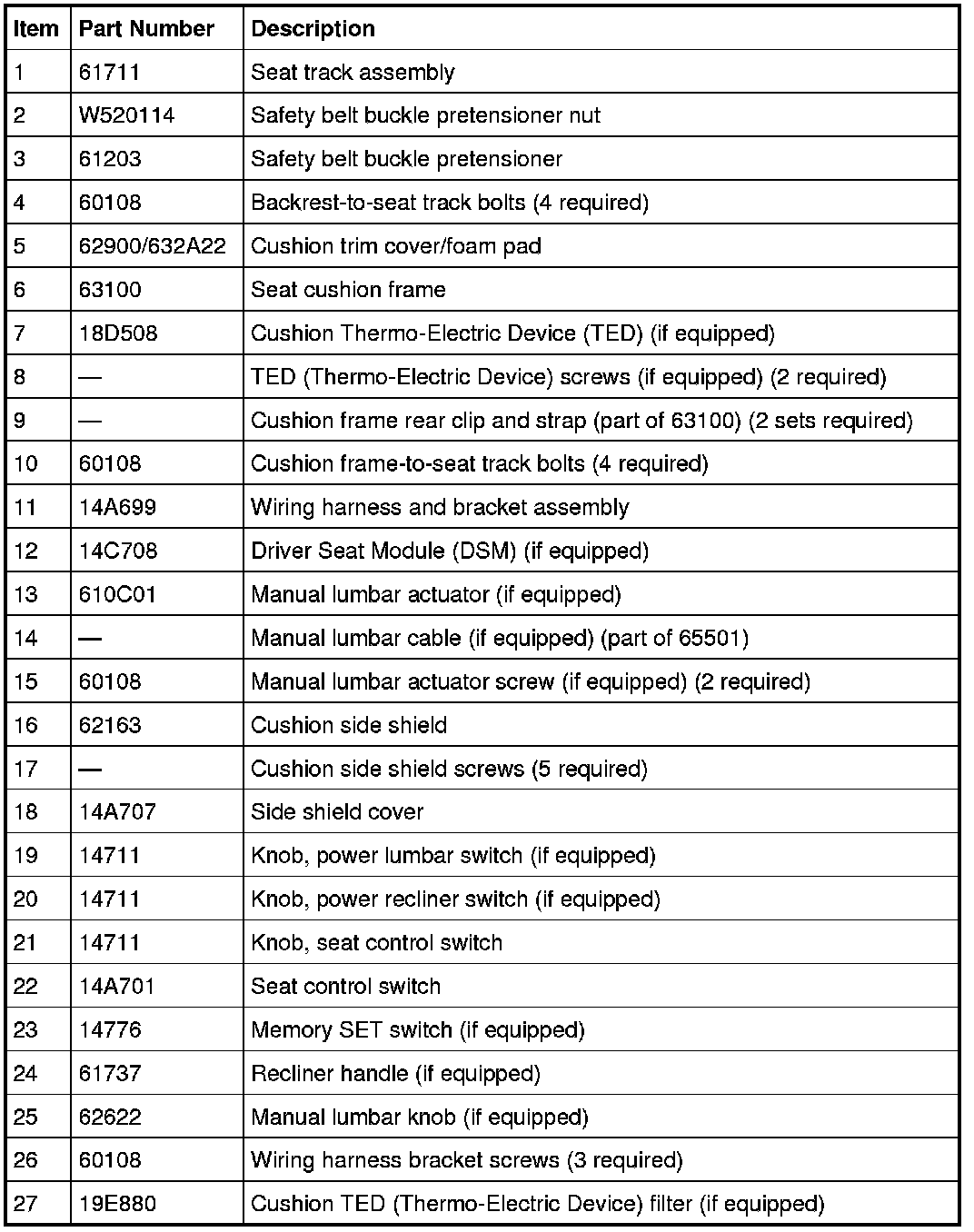Seat - Exploded View, Front