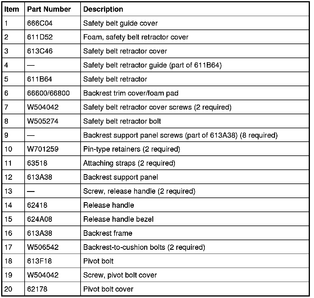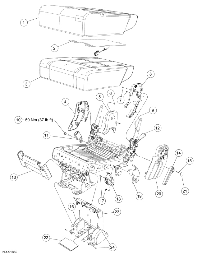 Seat - Exploded View, Second Row