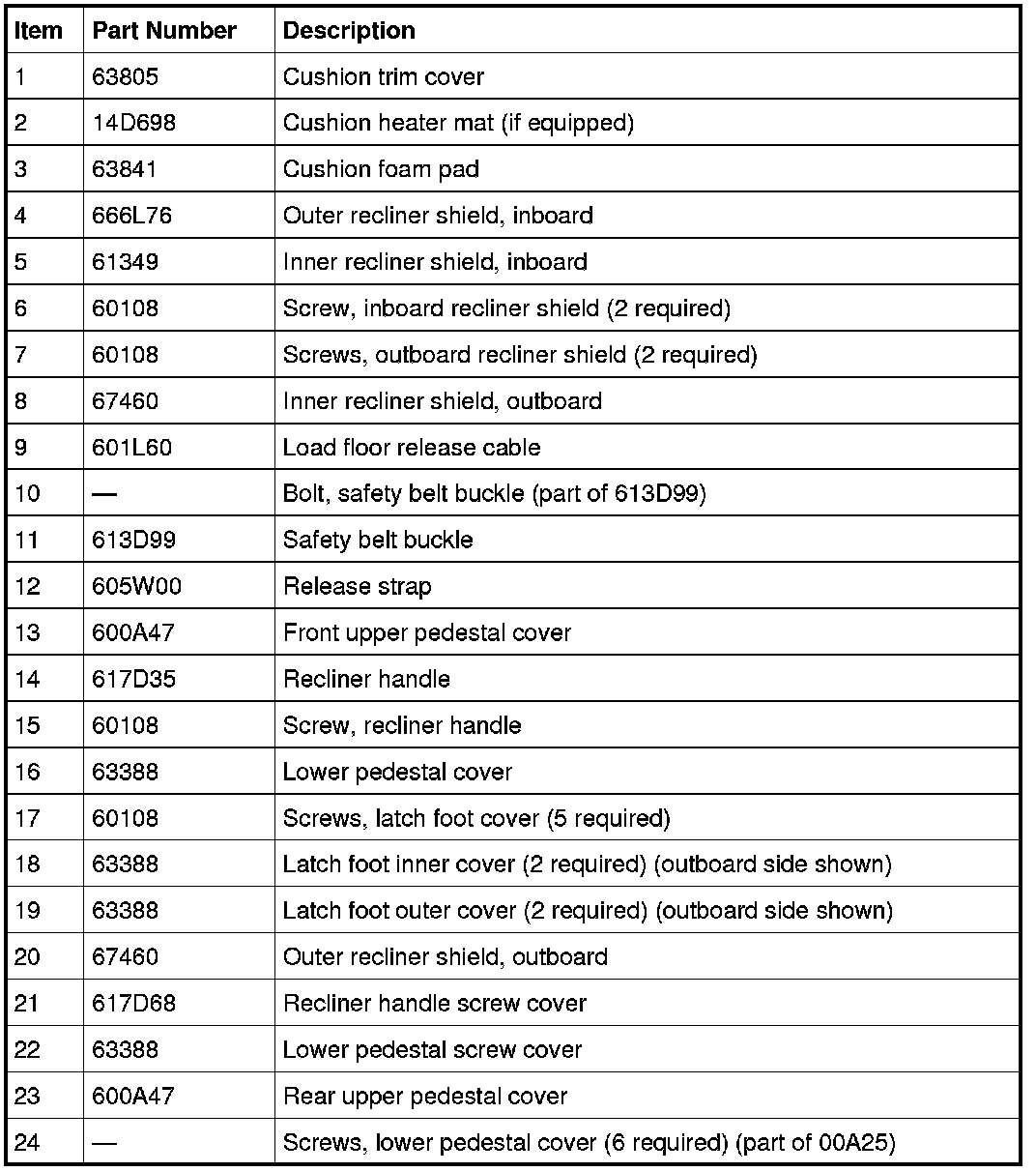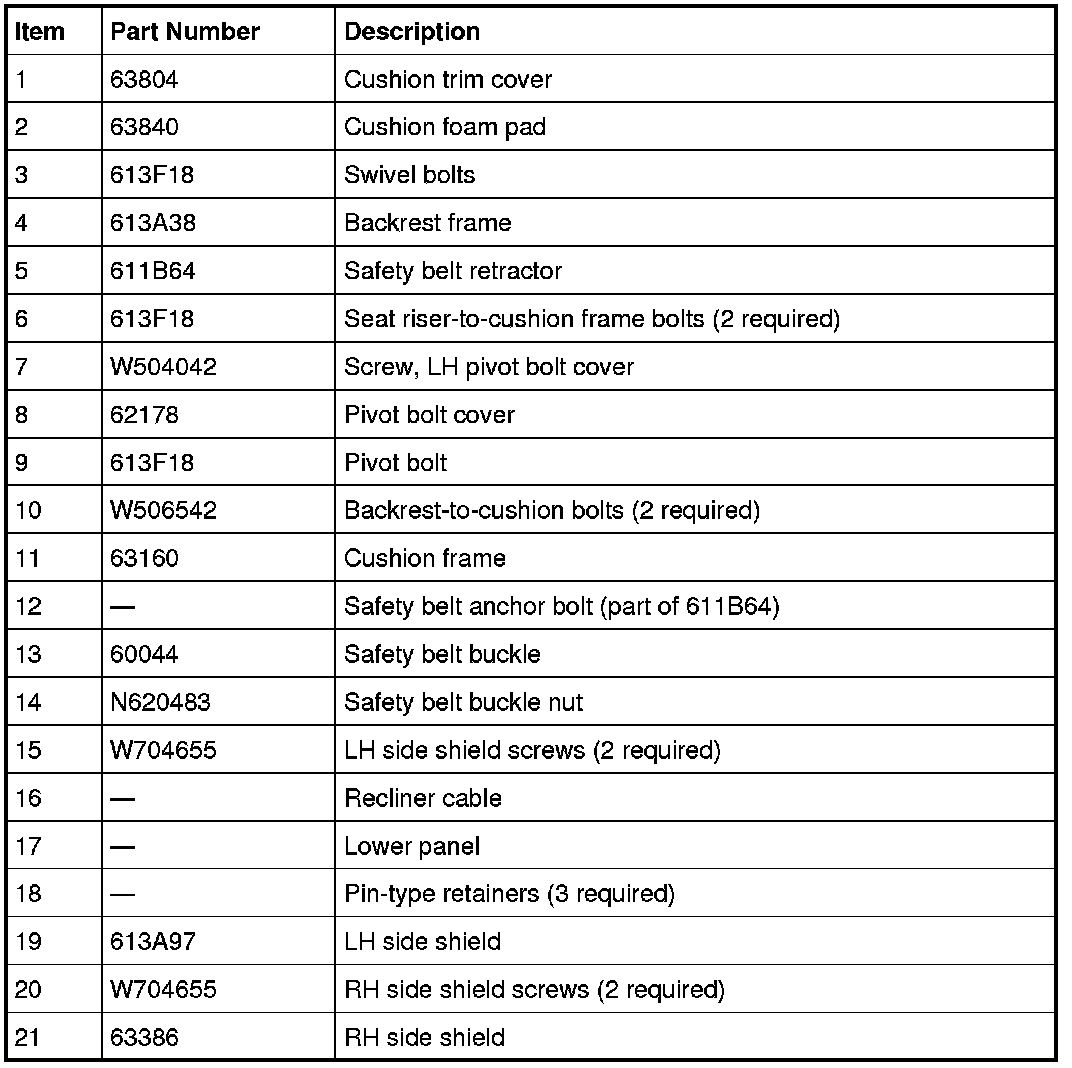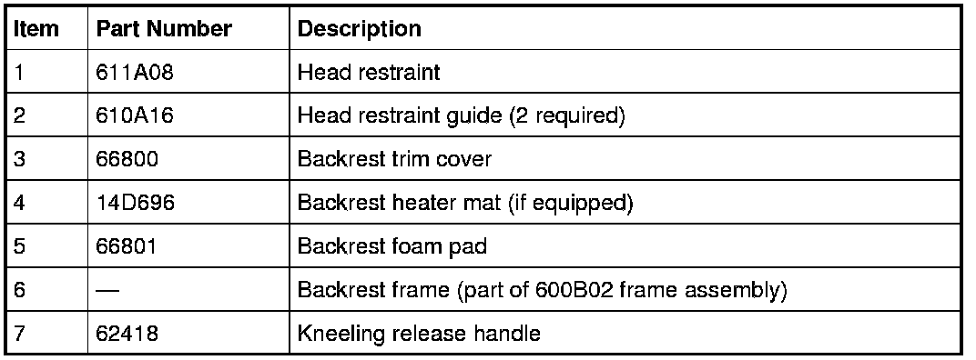 LH seat shown, RH similar.