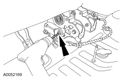 - Insert an appropriate tool in the torque shaft at the outboard side of the third row power seat motor and rotate to raise the seat backrest.