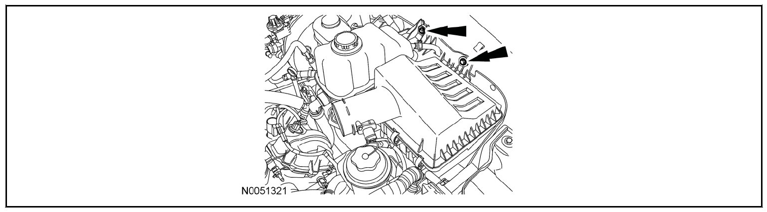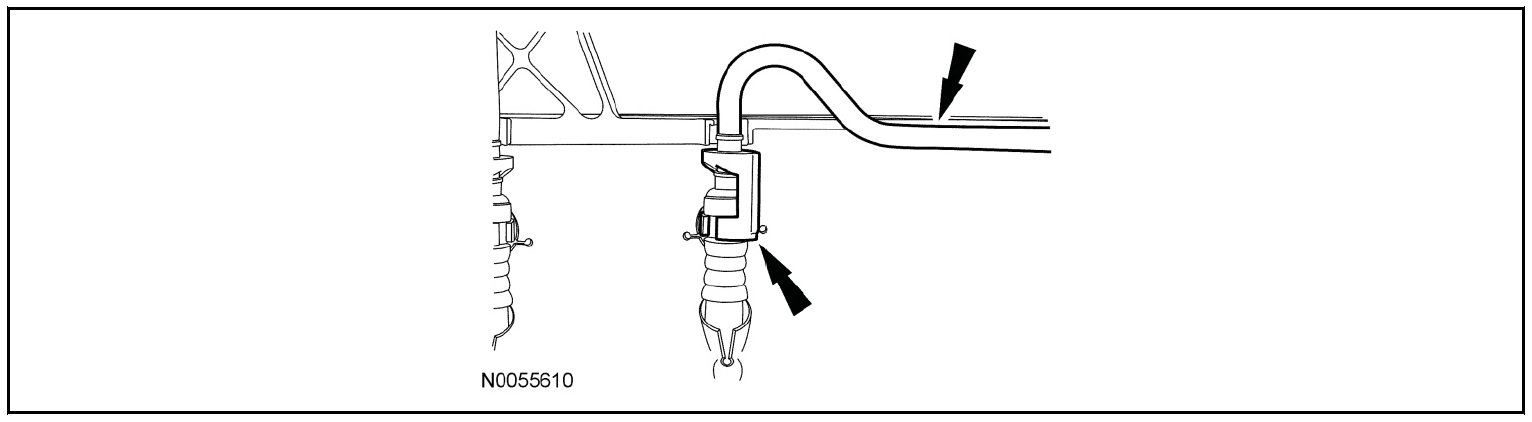 - Unclip the RH hose from the retainers on the side of the degas bottle/air cleaner module.