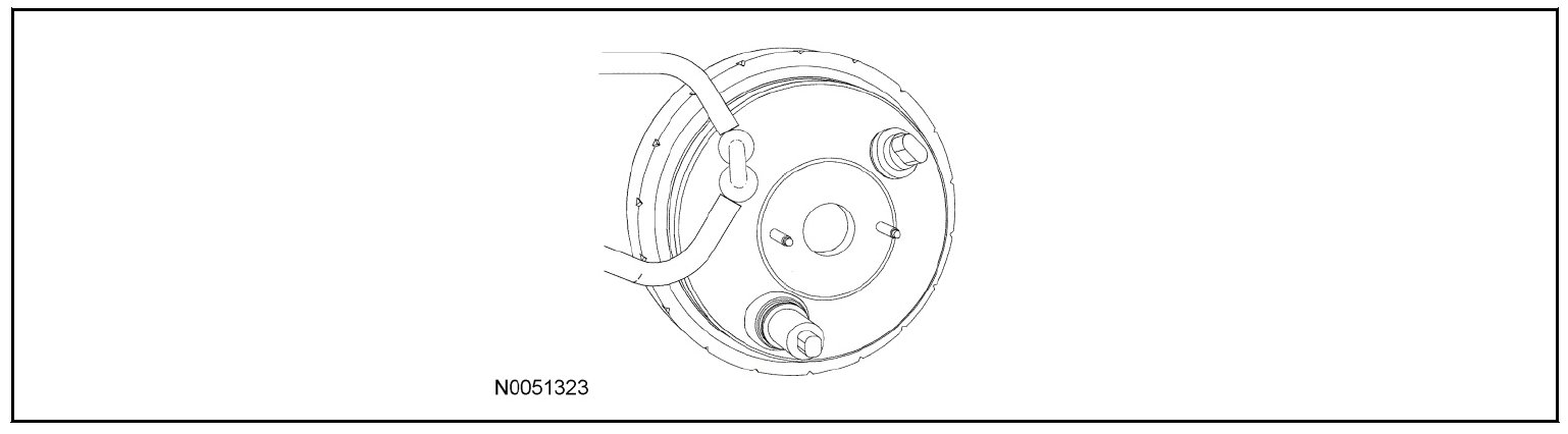 42. Disconnect the brake booster vacuum supply hose and secure the hose to the engine.