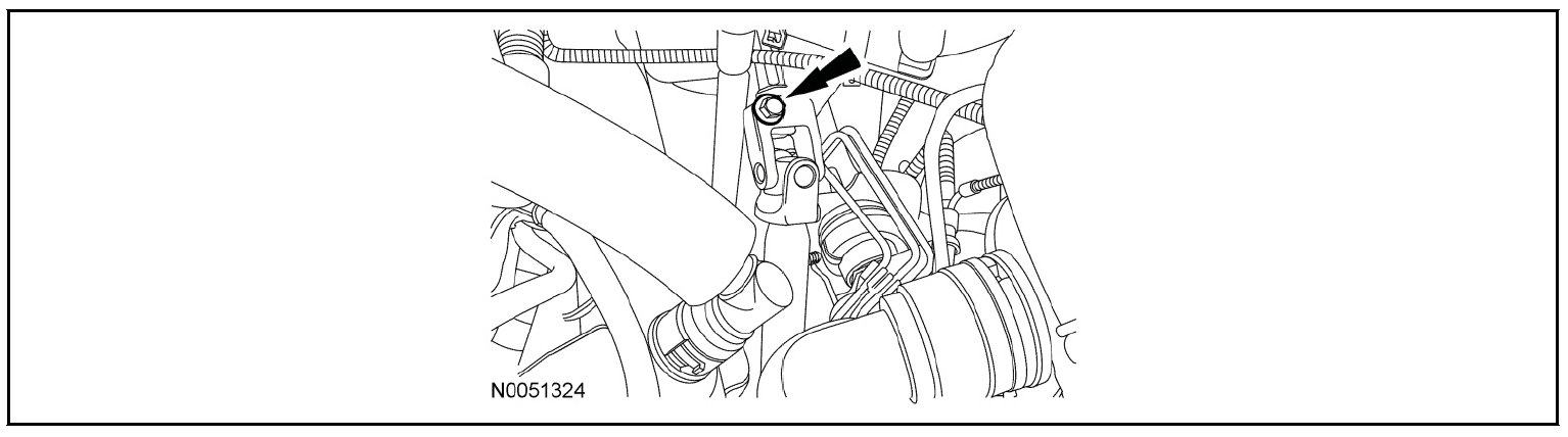 44. NOTICE: Do not allow the steering column shaft to rotate while the intermediate shaft is disconnected or damage to the clockspring may result. If there is evidence that the shaft has rotated, the clockspring must be removed and recentered.