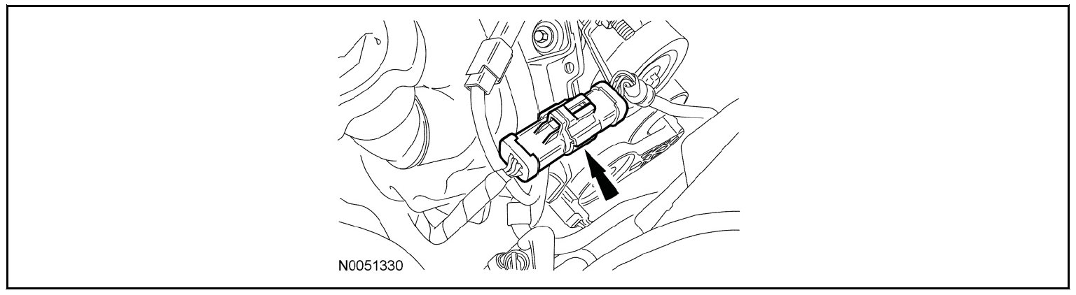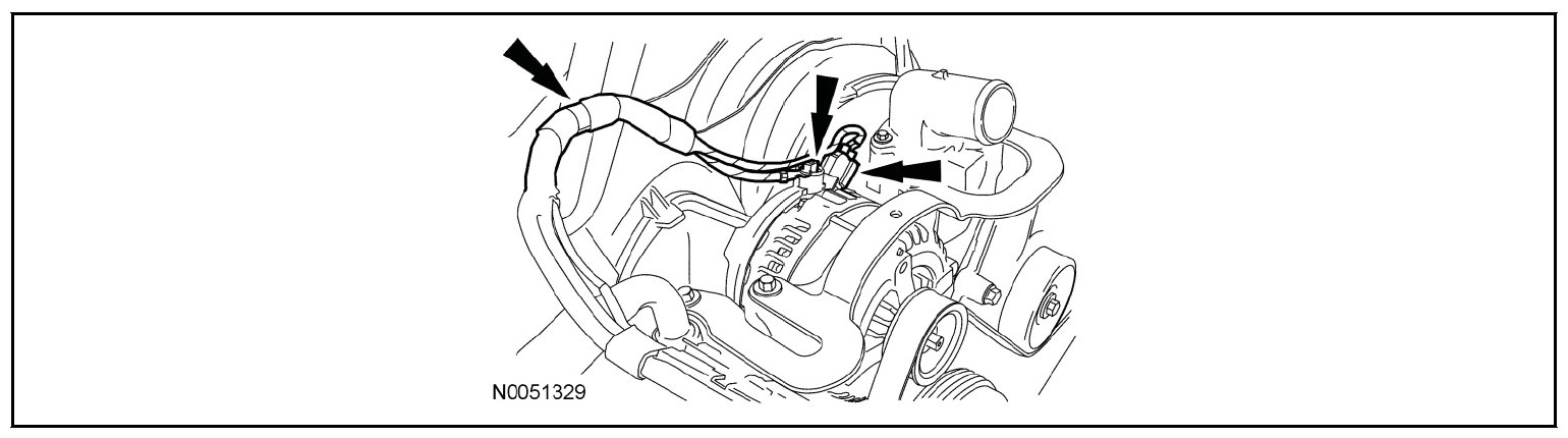 51. Remove the nut and disconnect the electrical connector from the generator wiring harness and remove from the retainer.