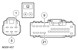 - Measure the resistance between adjustable pedal switch C2089-5, circuit CPP09 (VT/OG), harness side and C2089-1, circuit CPP10 (BN/BU), harness side.
