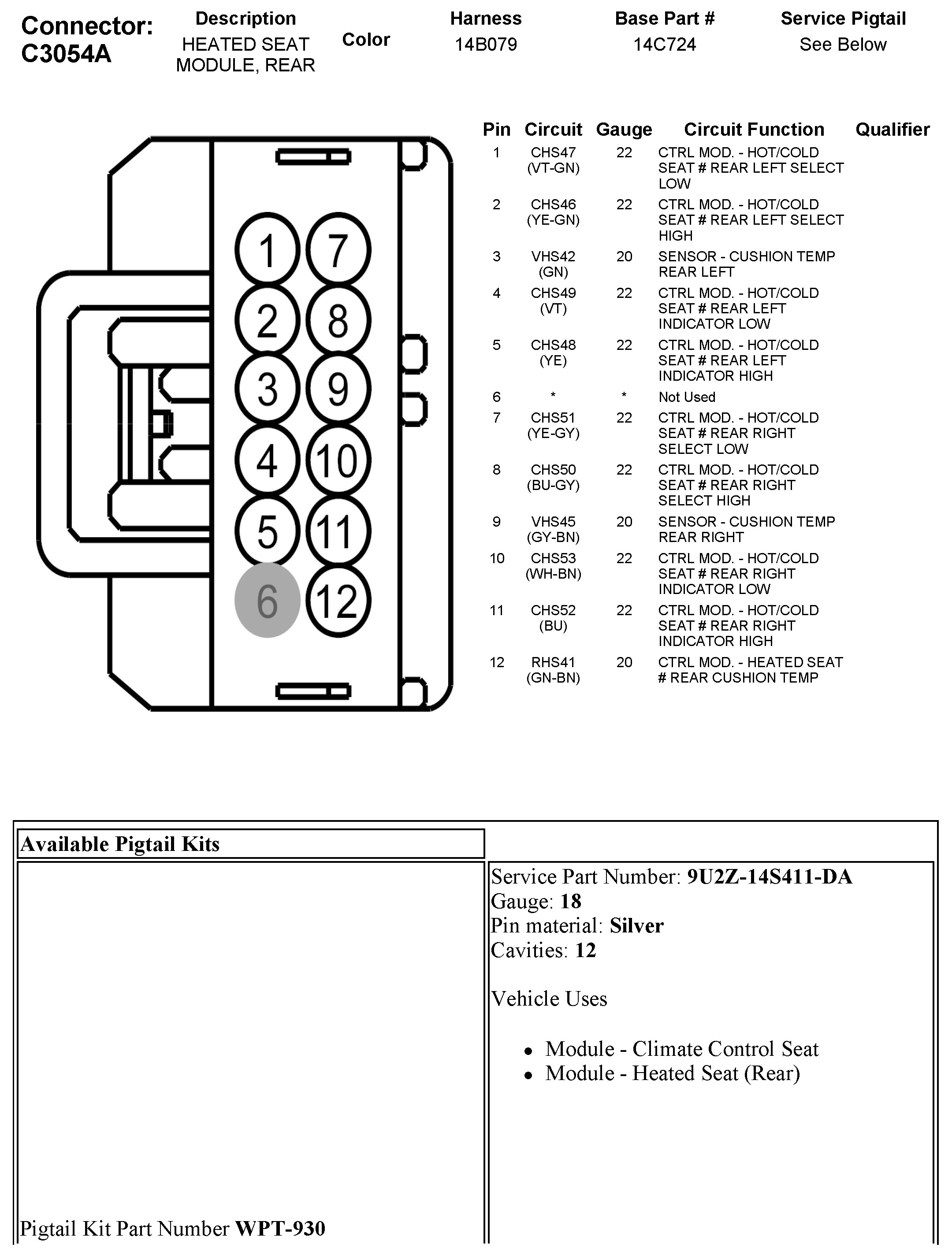 C3054A Heated Seat Module, Rear
