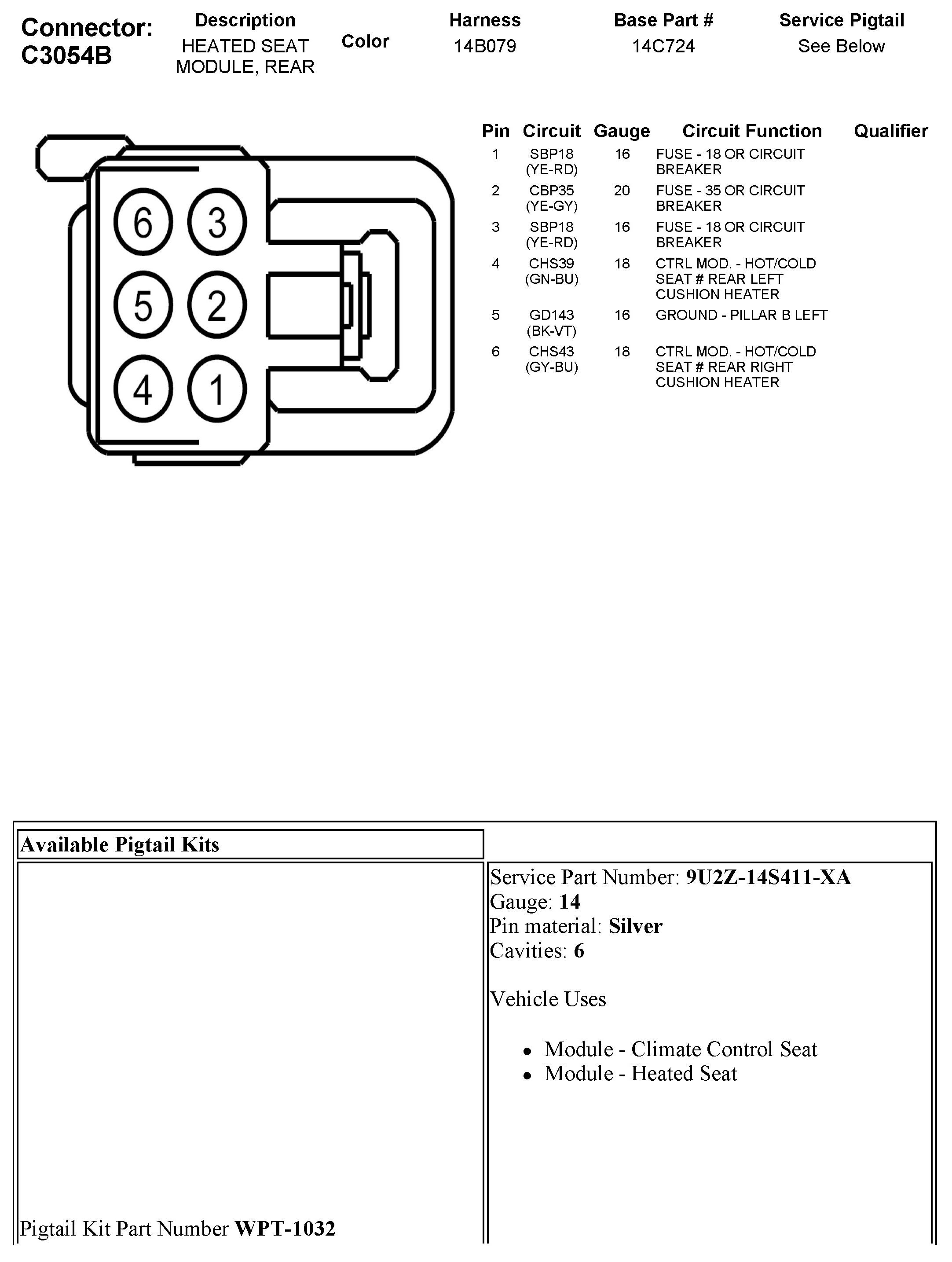 C3054B Heated Seat Module, Rear