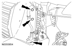 12. Disconnect the 2 transmission fluid cooler-to-radiator hoses.