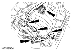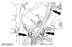 22. Connect the RH KS (Knock Sensor) electrical connector and the heater coolant hose.