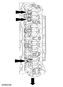 17. NOTICE: The camshaft bearing caps must be installed in their original locations. Record camshaft bearing cap locations. Failure to follow these instructions may result in engine damage.