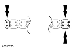 9. If the copper links are not visible, mark 2 links on one end and 1 link on the other end, and use as timing marks.
