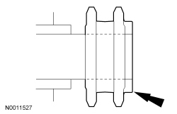 NOTICE: Prior to installation, inspect the tensioner-sealing bead for seal integrity. If cracks, tears, separation from the tensioner body or permanent compression of the seal bead is observed, install a new tensioner or engine damage may occur.