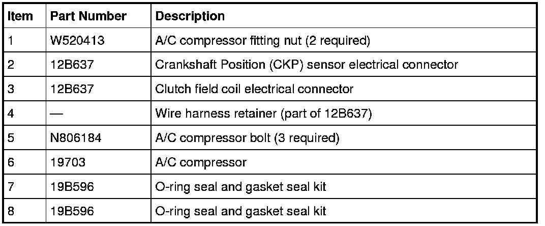 NOTE: A new A/C compressor may come equipped with an A/C clutch disc and hub, A/C compressor pulley and A/C clutch field coil already installed. If these components are not pre-installed, it will be necessary to transfer these parts from the old A/C compressor to the new compressor prior to installation of the A/C compressor if suitable for reuse.
