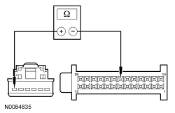NOTE: Due to limited connector accessibility, before carrying out this test step, visually inspect the wiring between the HVAC module and actuator for opens or shorts. If no damage is visually evident, proceed with the test.