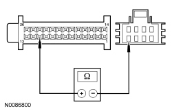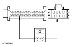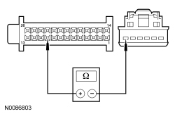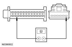 - With the fused jumper connections made as directed below, measure the resistance between HVAC module- EMTC (Electronic Manual Temperature Control) C2357A-10, circuit RH111 (GY/BU), harness side and HVAC module- EMTC (Electronic Manual Temperature Control) C2357A-19, circuit VH438 (GN/VT), harness side.