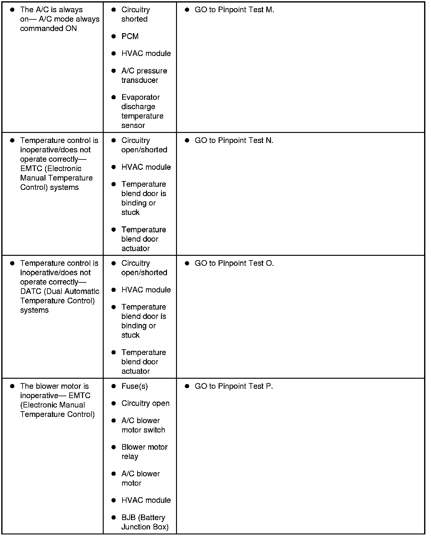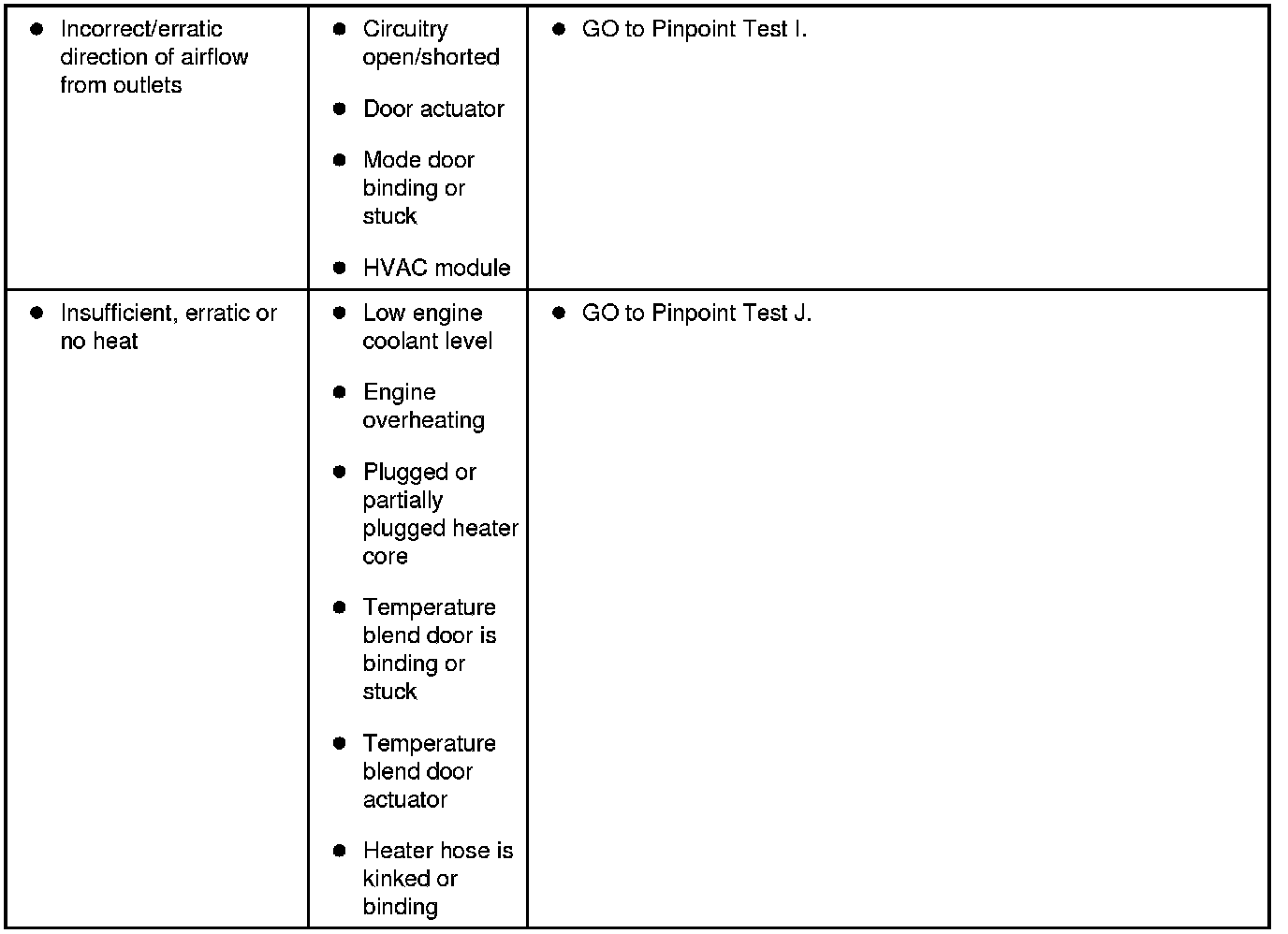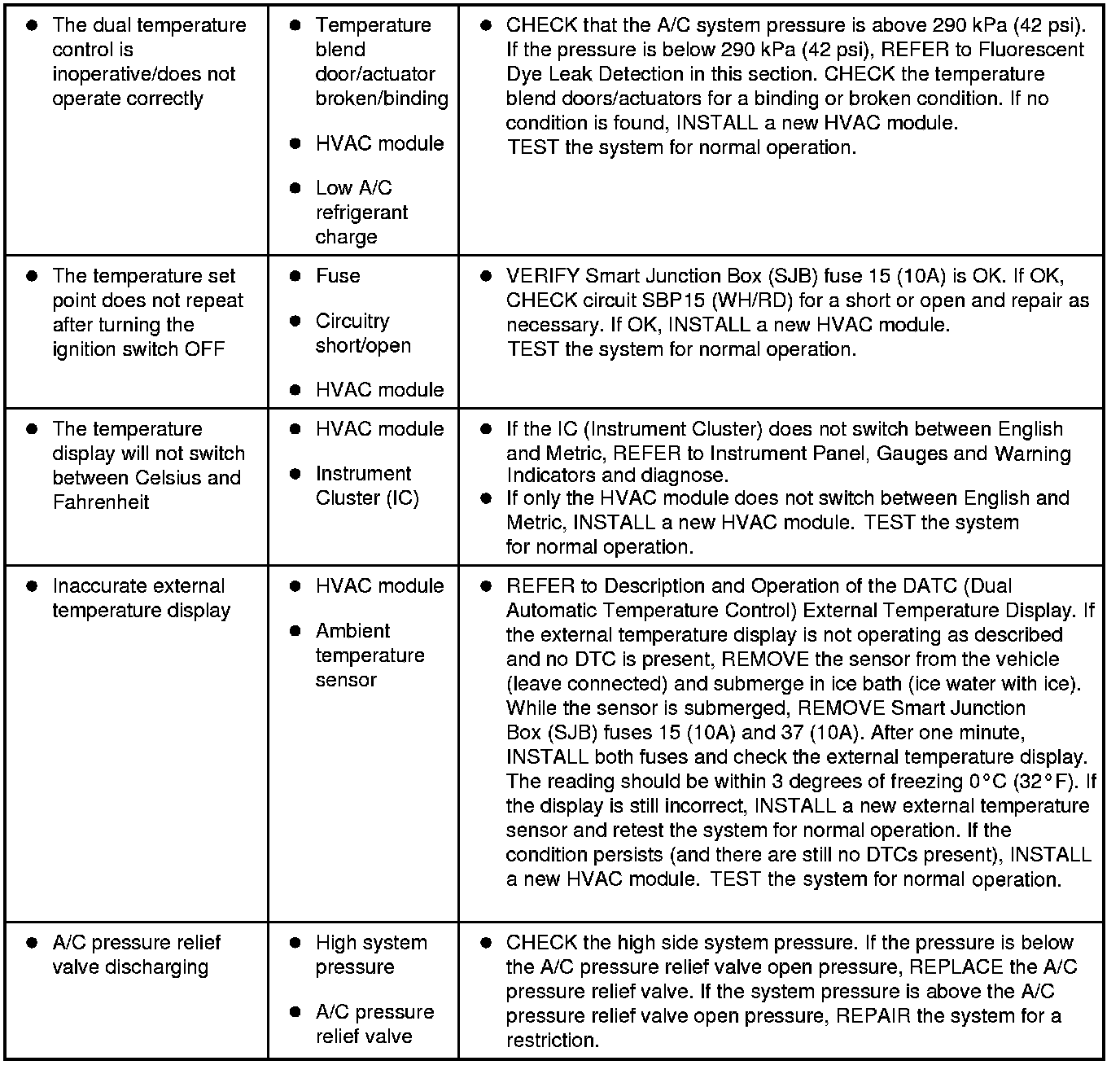 Symptom Chart - Climate Control Systems