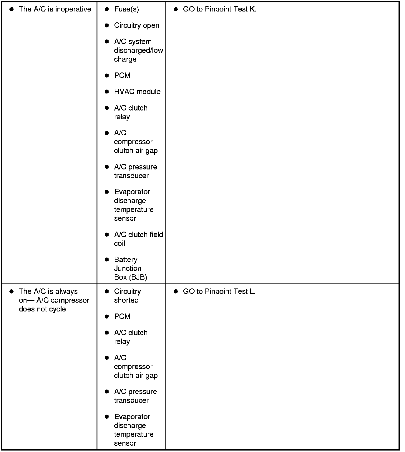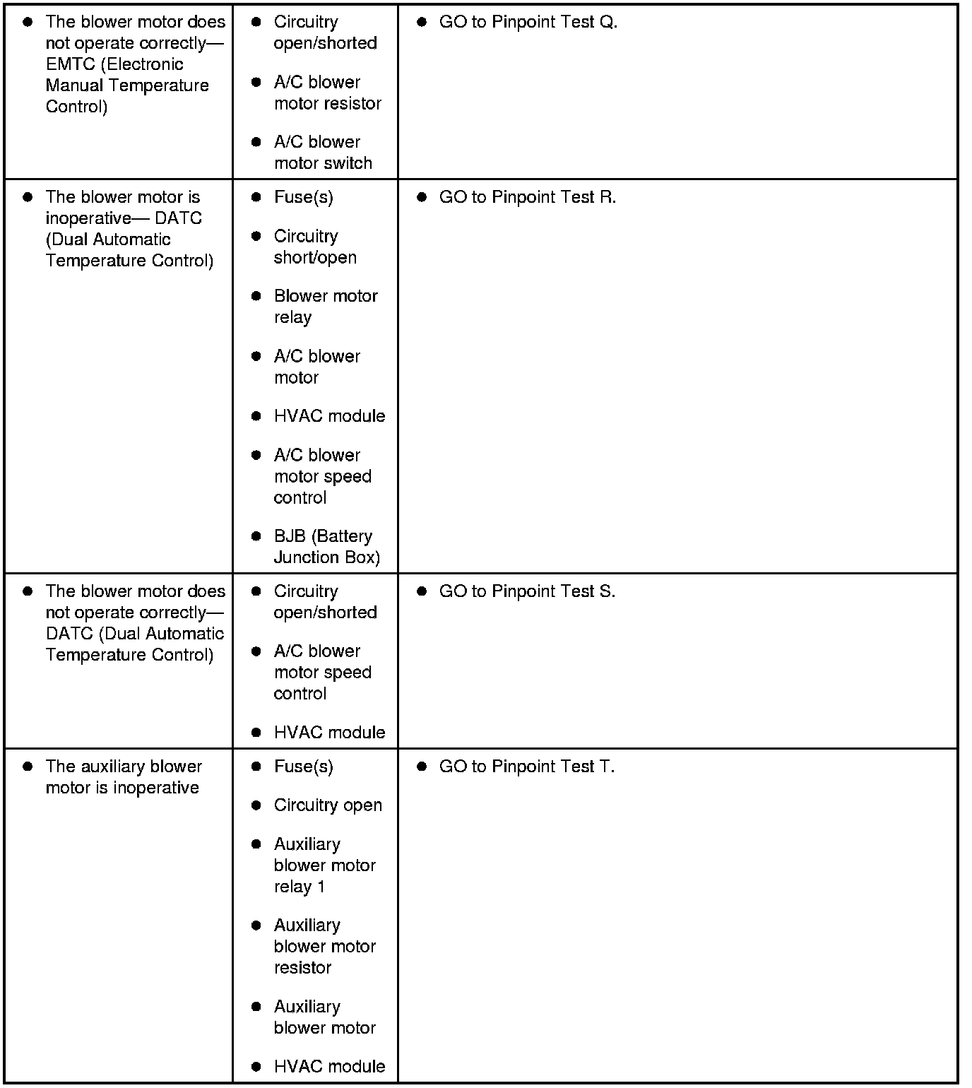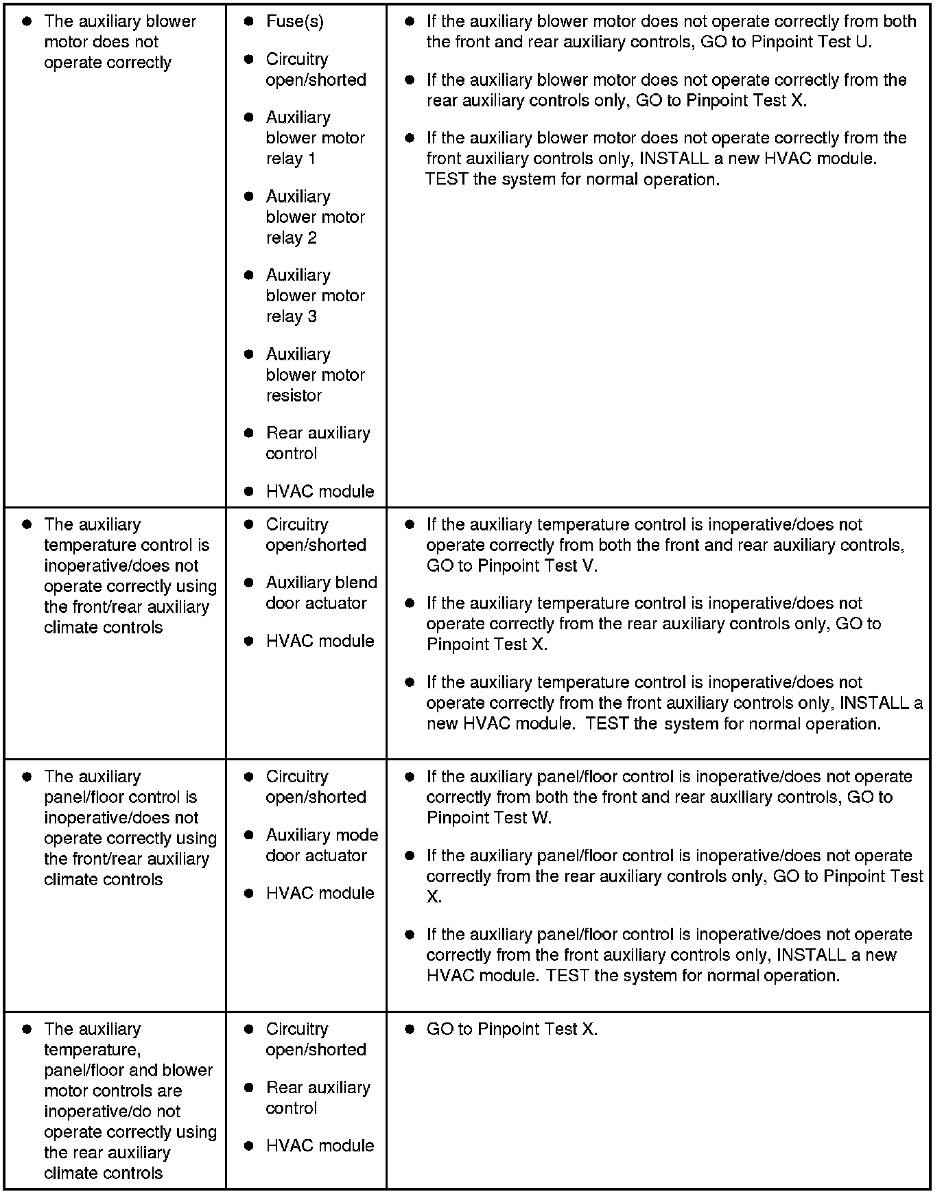 Symptom Chart - Climate Control Systems