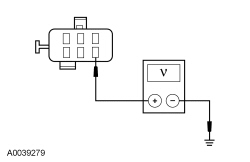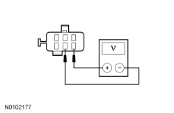 - Measure the voltage between the clock C2016-6, circuit SBP14 (BN/RD), harness side and ground.