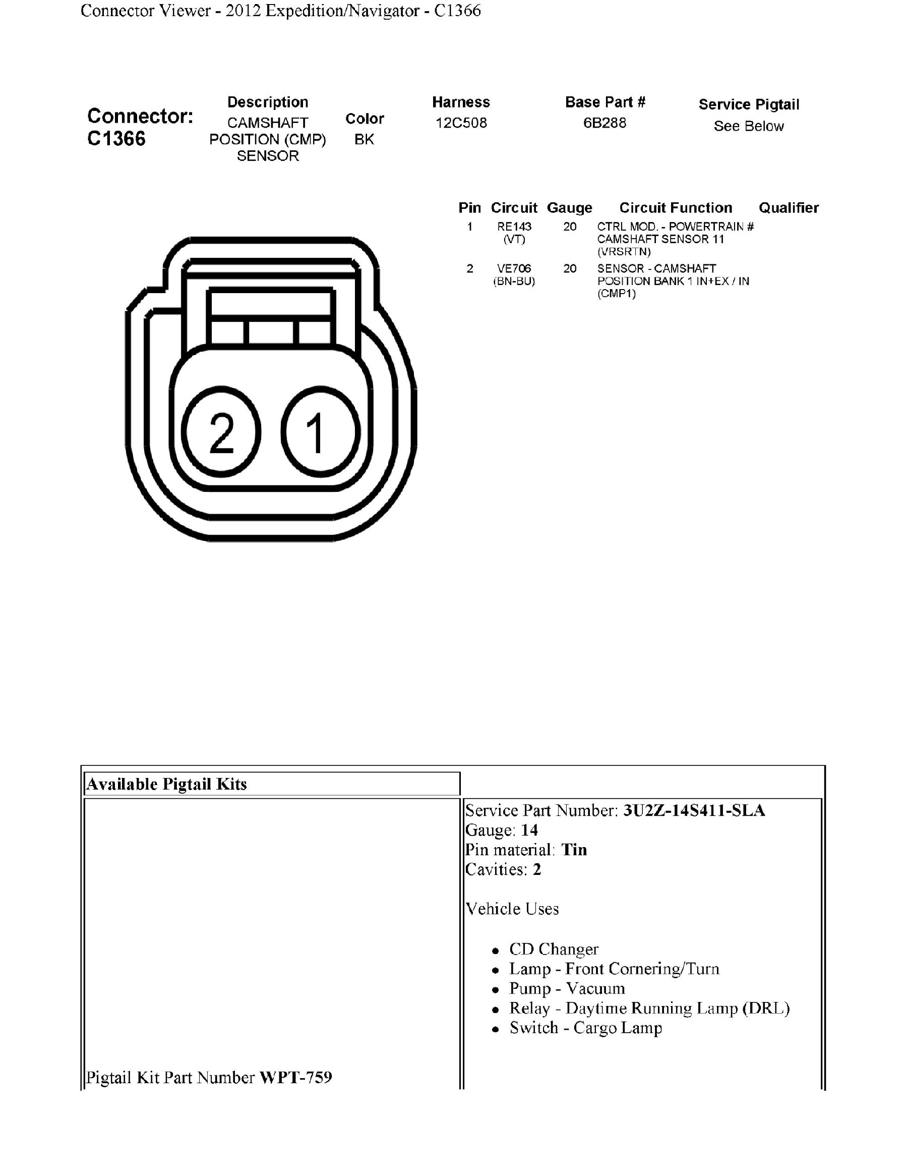 C1366 Camshaft Position (CMP) Sensor