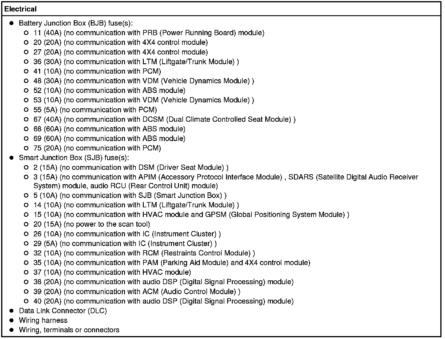 - If a module fails to communicate during the network test, GO to Symptom Chart. Symptom Related Diagnostic Procedures