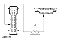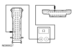 - Measure the resistance between the IC (Instrument Cluster) C220-4, circuit VDB06 (GY/OG), harness side and the DLC (Data Link Connector) C251-3, circuit VDB06 (GY/OG), harness side.
