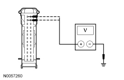 - Measure the voltage between the HVAC module C228A-12 or C2357A-12, circuit CBP37 (WH), and the HVAC module C228A-13 or C2357A-13, circuit SBP15 (WH/RD) and ground.